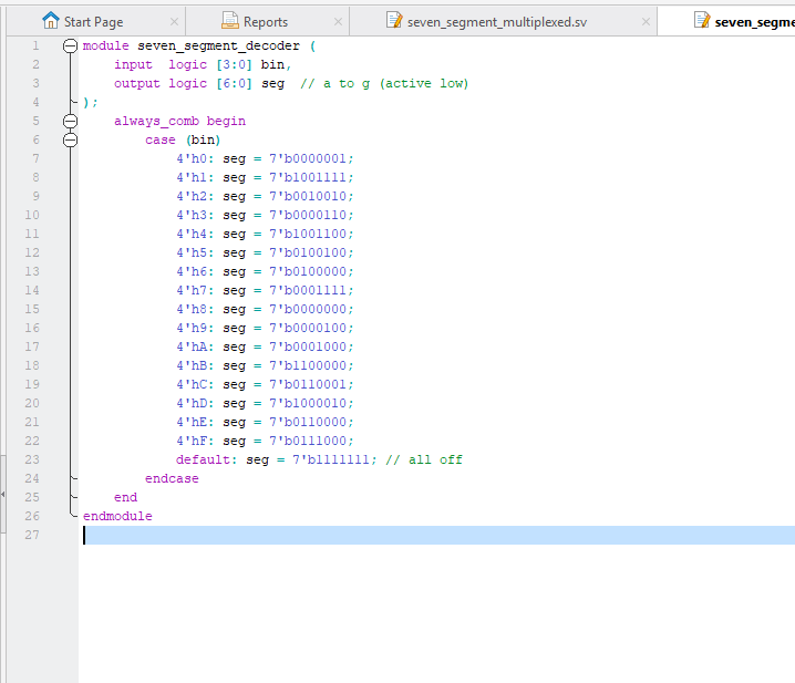 Figure 9 shows the seven segment display decoder code that it generated, which also compiled fine and seems optimized and reasonable.
