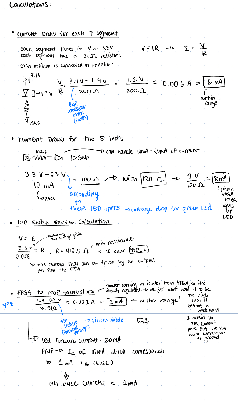In Figure 4 we can see all the calculations performed to ensure we are not drawing more current that possible from the FPGA pins - 8mA.