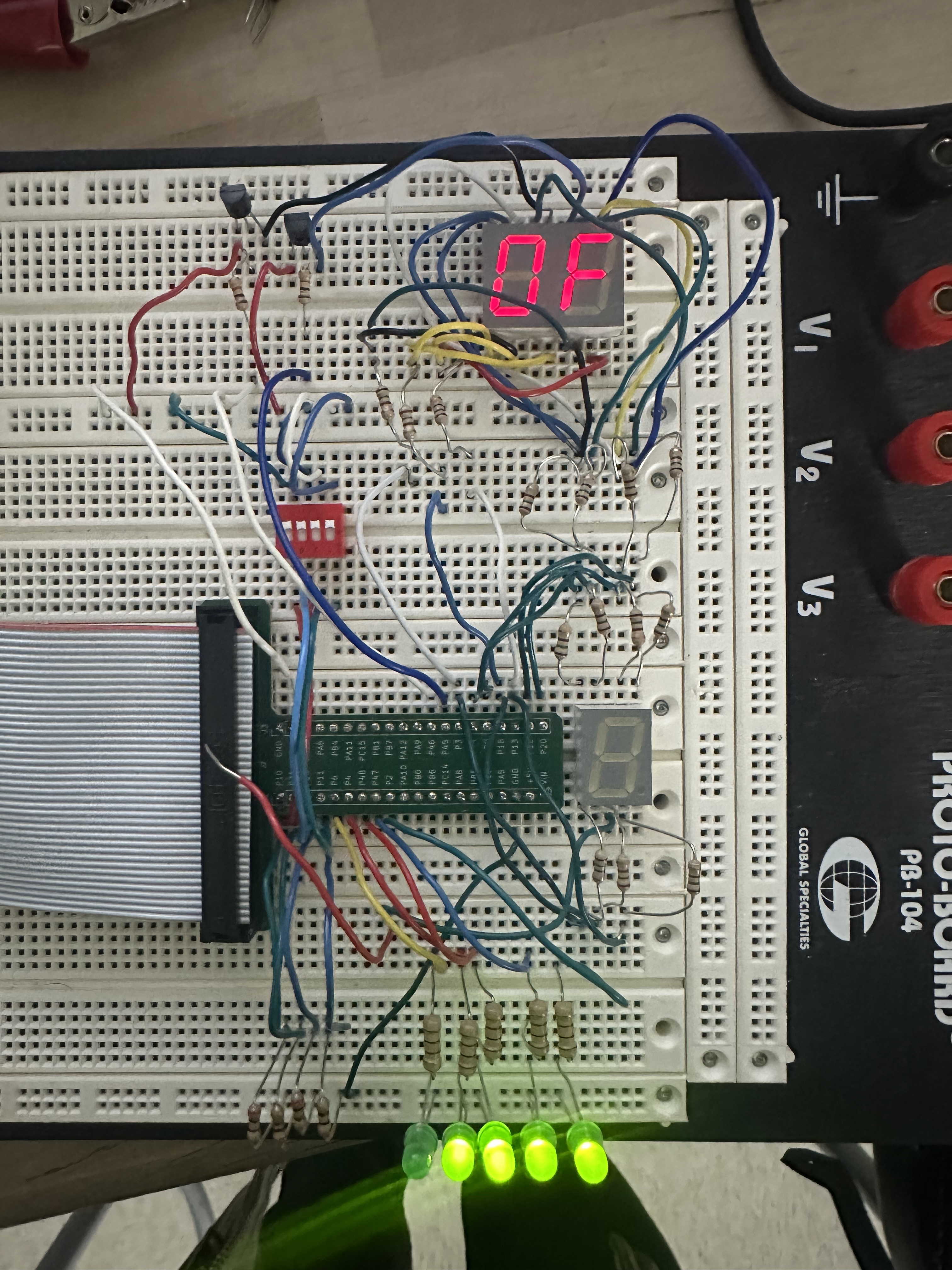 Figure 1 shows the physical implementation the breadboard with the time-multiplexed segment visible.