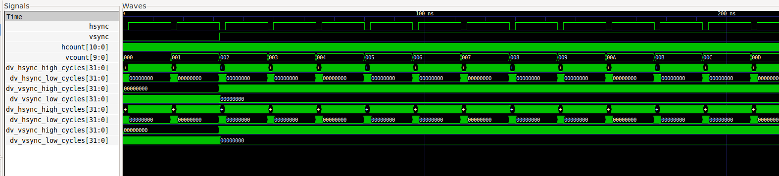 Figures 4 and 5 represent some of the testbenches for our design. In Figure 4 we have the SPI module testbench, which starts the reel spinning process, based on SPI codes and values sent by the MCU. And, Figure 5 is our VGA testbench which shows our monitor synchronization signals.